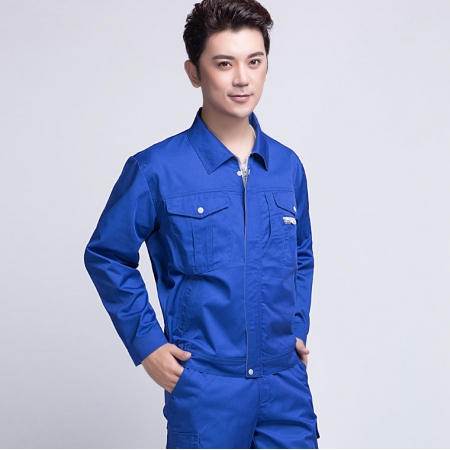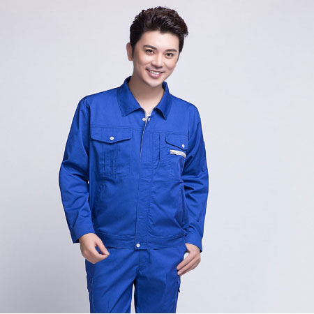 卡其拼藏青涤棉纱卡长袖工衣AC109