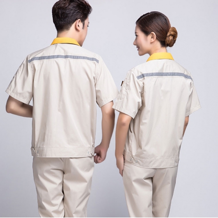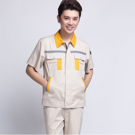 当前位置: 主页 > 工作服 > 涤棉工作服 > 米色拼黄色短袖工作服AD09-1