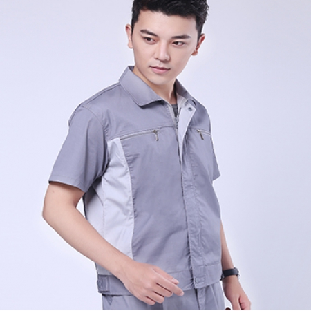 浅灰拼米白夏季工作服AD076