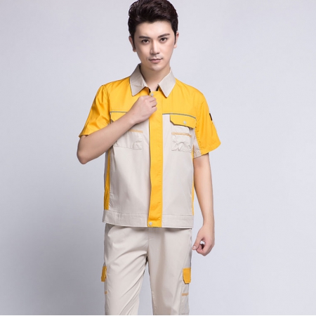 当前位置: 主页 > 工作服 > 短袖工作服 > 米色拼黄夏季工作服AD08-1