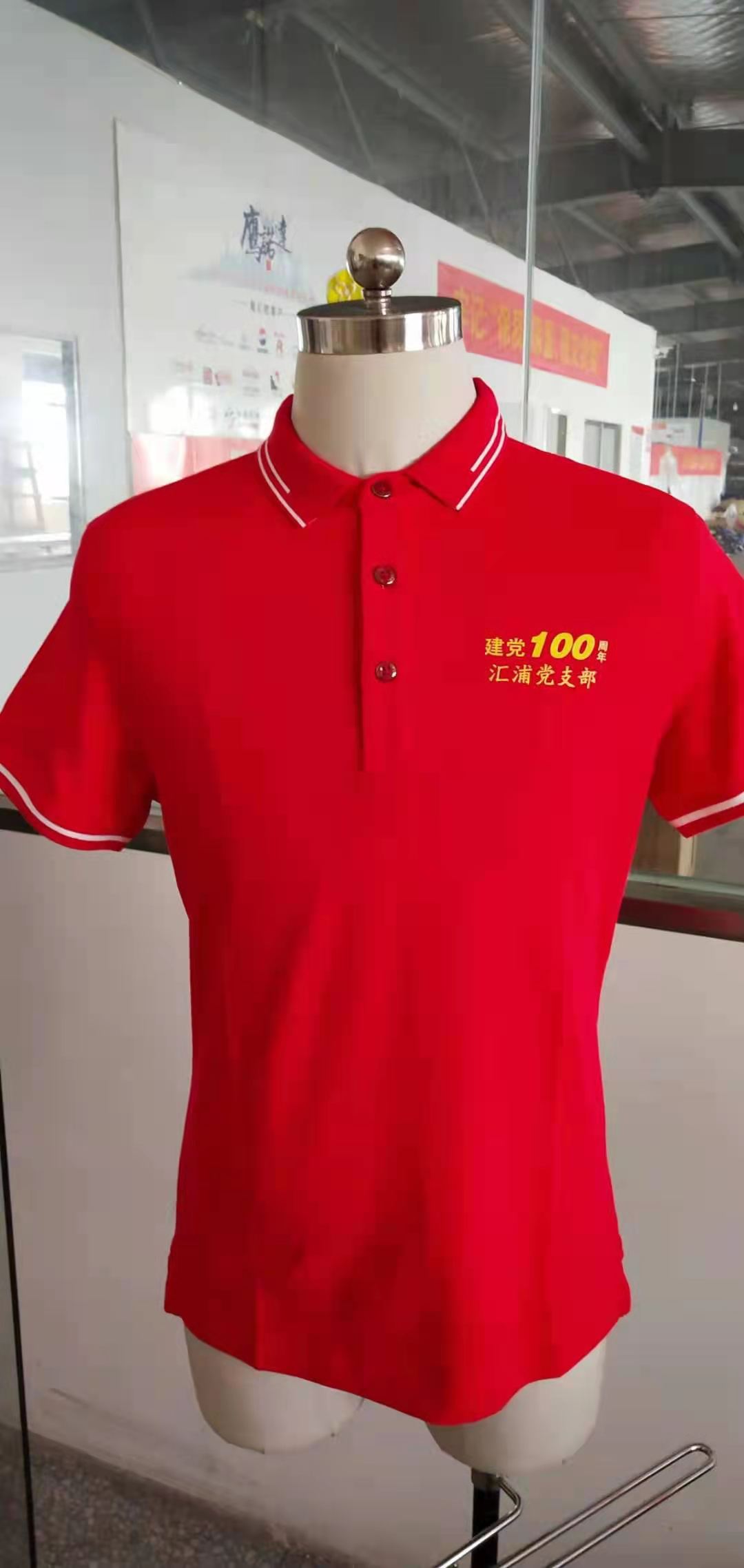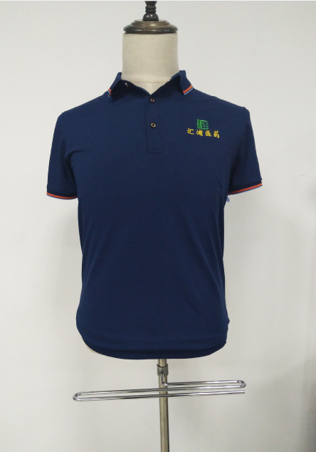 以上这款深蓝色是非常适合夏季室内工作者穿着的。其公司上个月先小定了一批。对我司的品质和服务都是比较满意,因此再次找到我司定制大量T恤衫。左前胸刺绣上汇浦医药的LOGO,T恤衫后背一般不加LOGO。此款目前正在刺绣LOGO中,很快就会交到汇浦医药手里。
