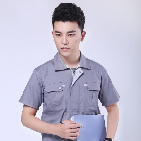 AD077采用浅灰色作为服装的整体的颜色基调,在炎热的夏天总能给人清凉之感。工作服采用环保的高棉材质,在穿着使用之时,即拥有全棉的是适度,同时也比全棉的拥有较高的耐磨度。左胸刺绣LOGO,专属于纥敏机械的工作服就诞生啦。