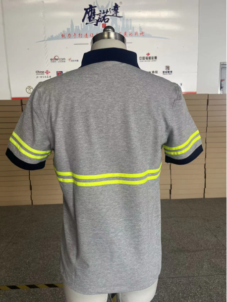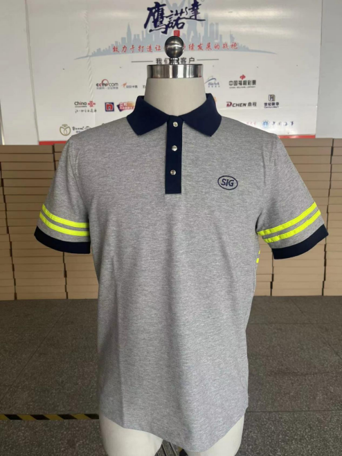 康美包今年的夏季T恤衫是以纯棉拉架材质为主的,棉的质感非常足,亲肤效果非常好,舒适透气耐用。也是今年的最新面料。经过两次打样之后得到大家的最终确认。反光条也有所改变,前面的反光条取消,袖口和后背的反光条保留。目前全部交付的夏季T恤衫也得到了大家的认可。