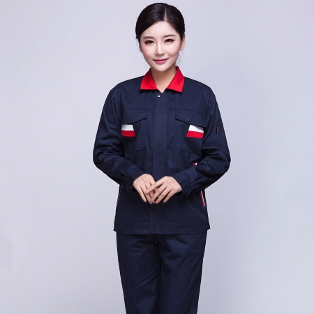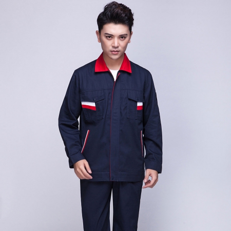 藏青拼米色涤棉线卡哈尔滨工作服AC090-QX