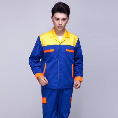 艳蓝配浅灰涤棉纱卡汽修工作服AC081-QX