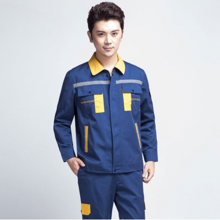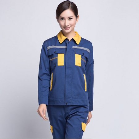 驼色配深蓝涤棉纱卡冬季汽修工作服AC073-QX