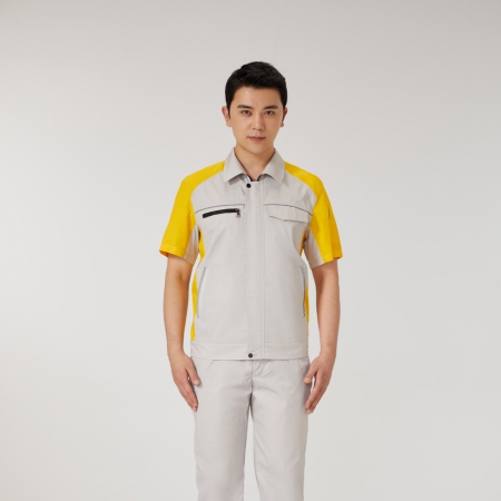 浅灰拼黄色工作服AD2206-4