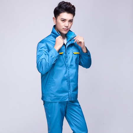 艳蓝配浅灰涤棉纱卡冬季工作服AC072-DJ