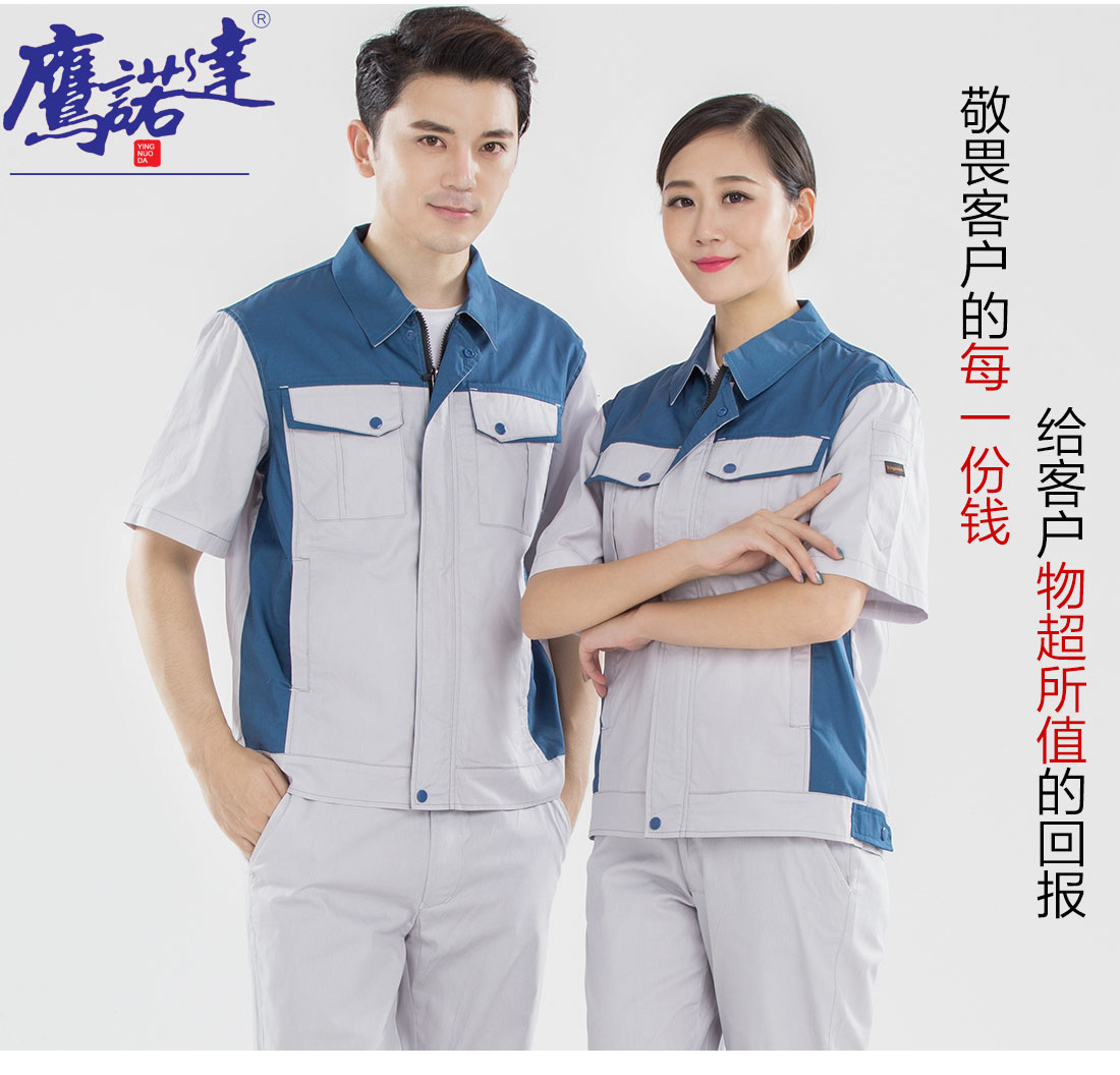米白拼浅绿色夏季工作服AD17-2-XJ