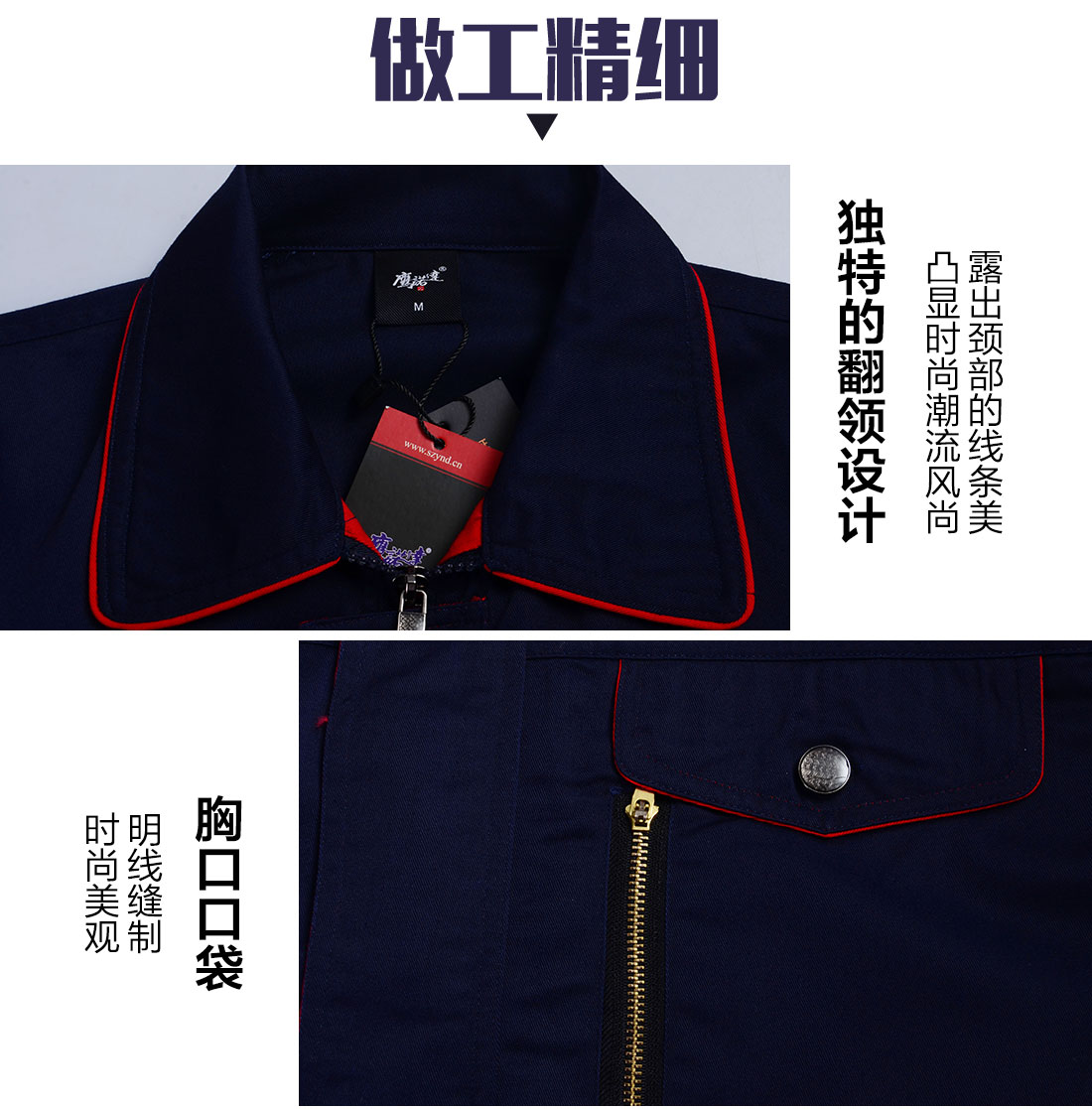 藏青拼大红生产加工工作服AC099-SC