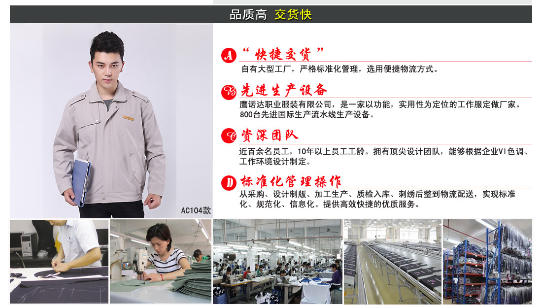 正是坚守着这种信念,历经16年的发展,由最初的10多人的起家的小企业,发展到今天拥有企业盐城骏放服饰,苏州鹰吉派劳保,苏州凯宏劳保下属3家企业,员工人数5000余人的大型企业,2001年按国际惯例组建了三大中心,生产中心以白大褂为龙头,推动其它产品,如t恤,西服,冲锋衣,安全帽等,营销中心从事产品开发和市场销售,目前遍及全国的营销网络已经形成。售后中心以帮助顾客解决问题的原则,7*24小时服务!