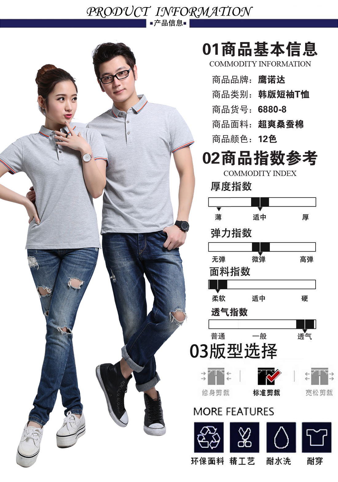 - 游客于 2018-04-16 09:44:07 发表花灰超爽桑蚕棉t恤衫工作服ID6880-8