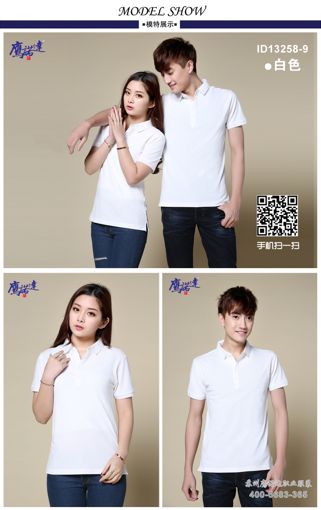 白色翻领纯棉莱卡Polo衫ID13258-9