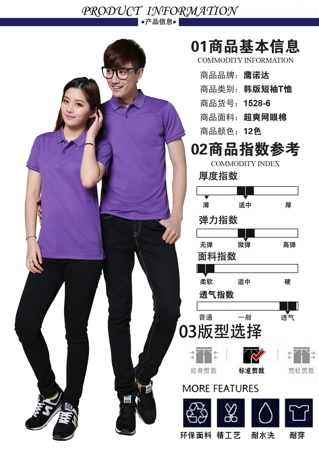 深紫提花翻领超爽网眼棉T恤衫ID1528-6