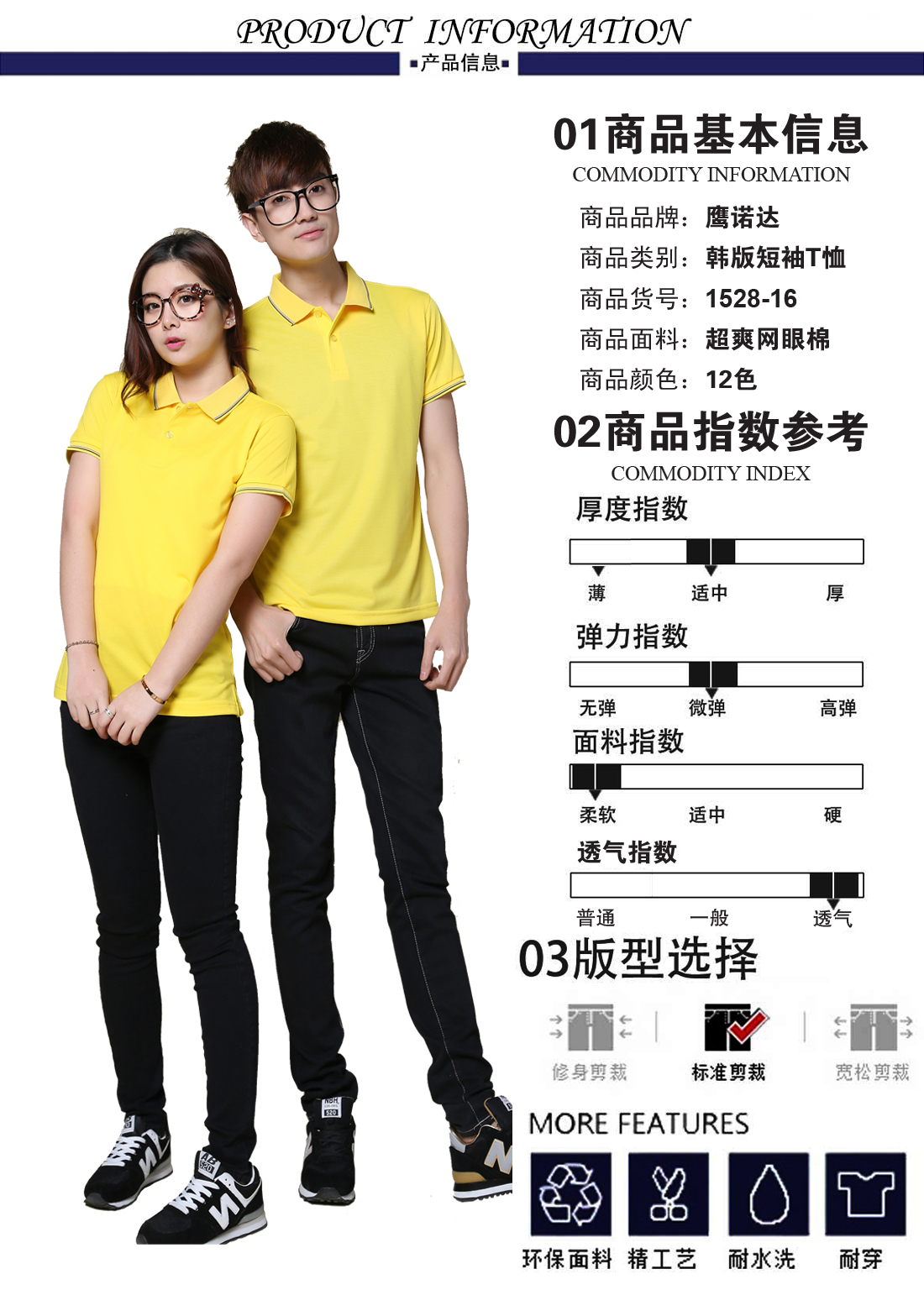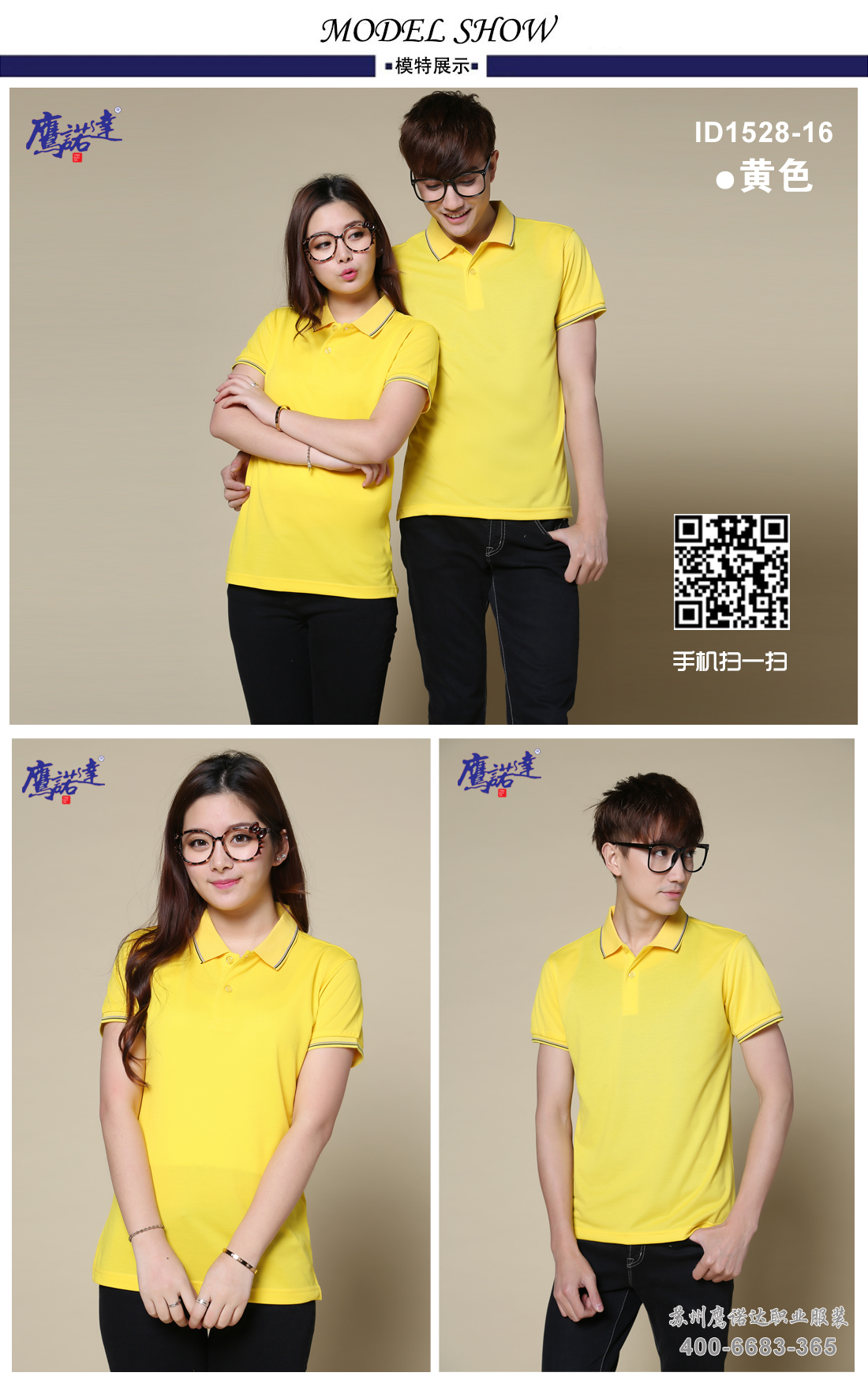 黄色提花翻领超爽网眼棉T恤衫ID1528-16