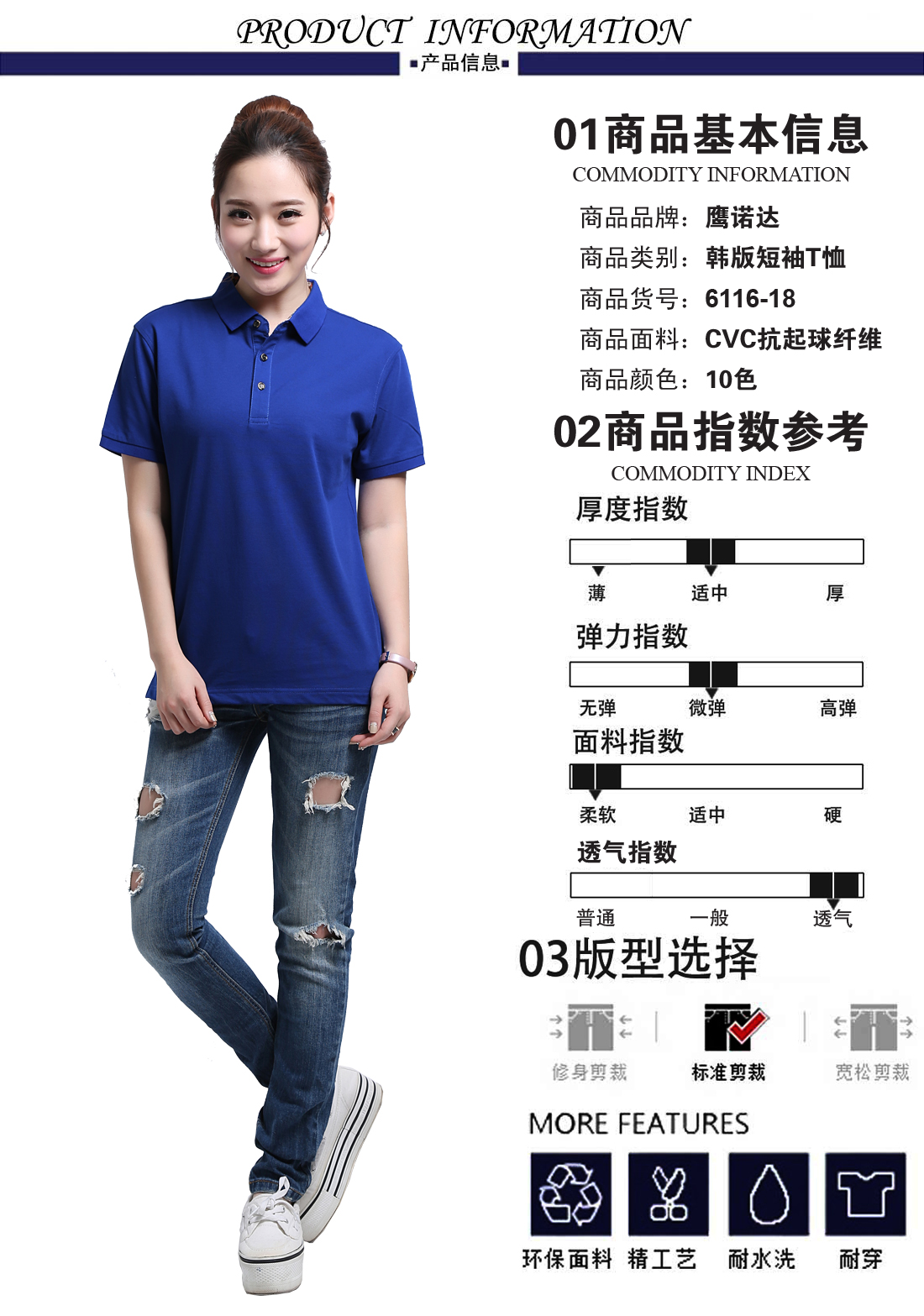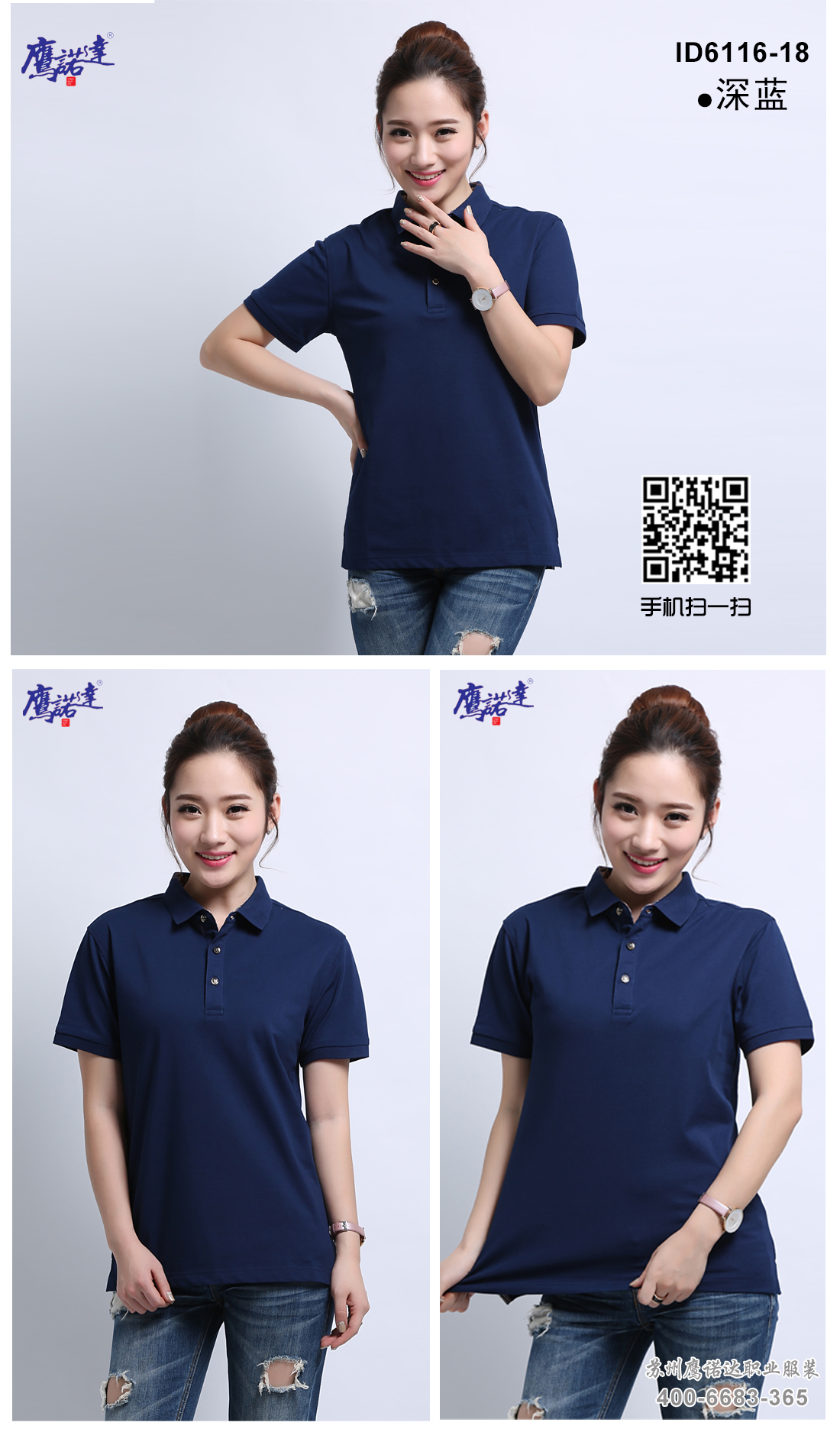 深蓝提花领cvc抗起球纤维Polo衫ID6116-18