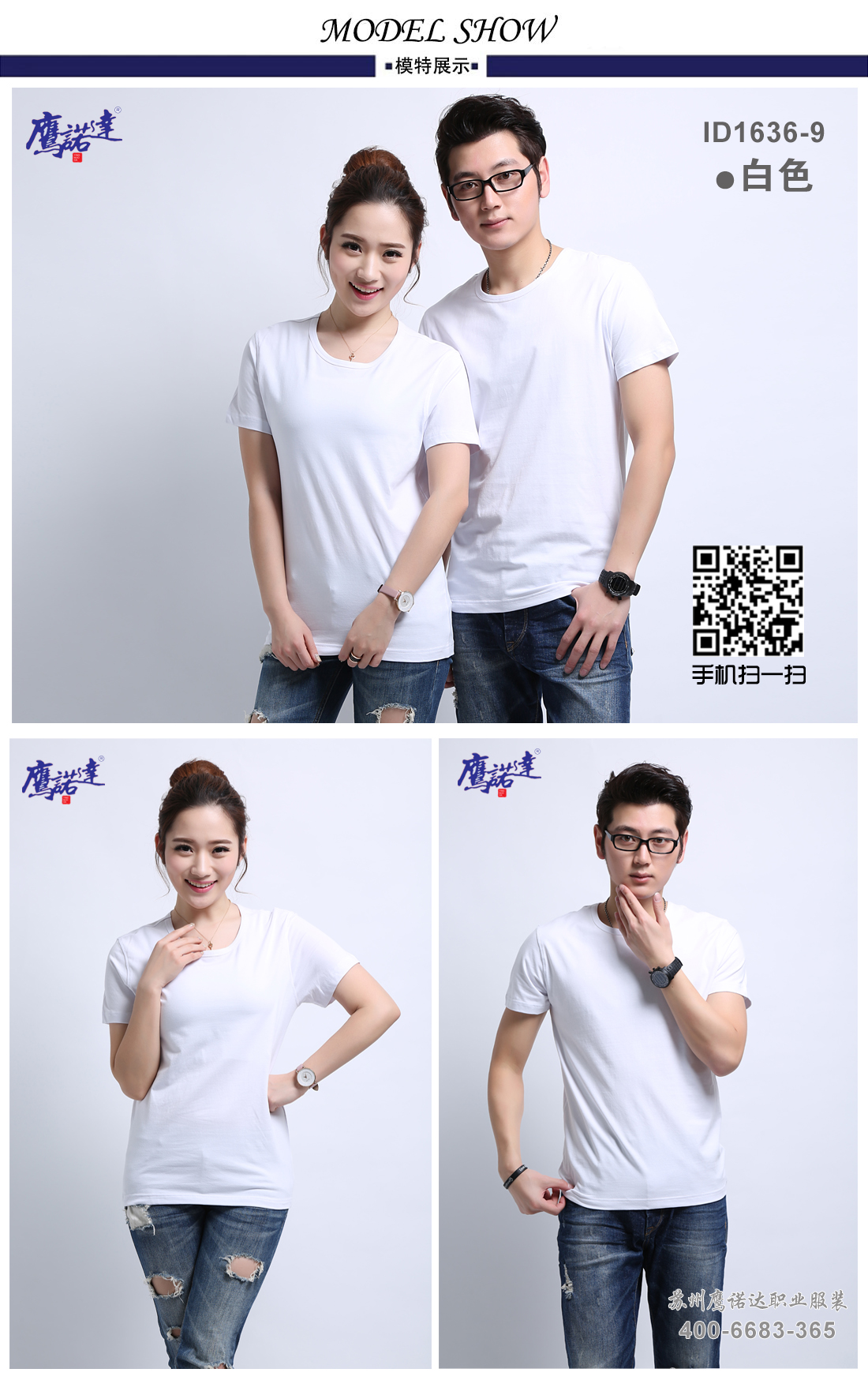 白色超爽兰精棉圆领衫ID1636-9