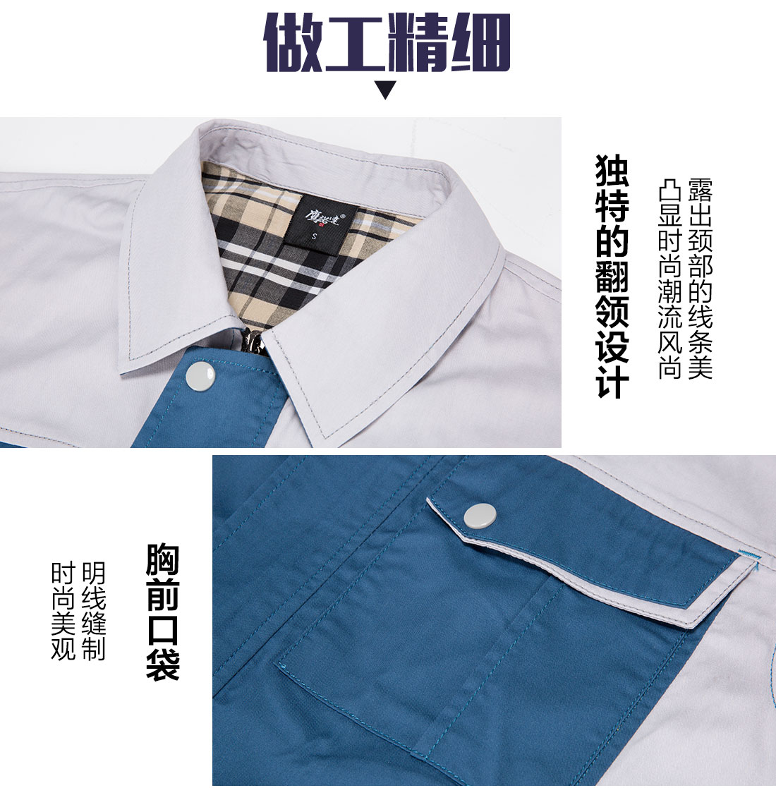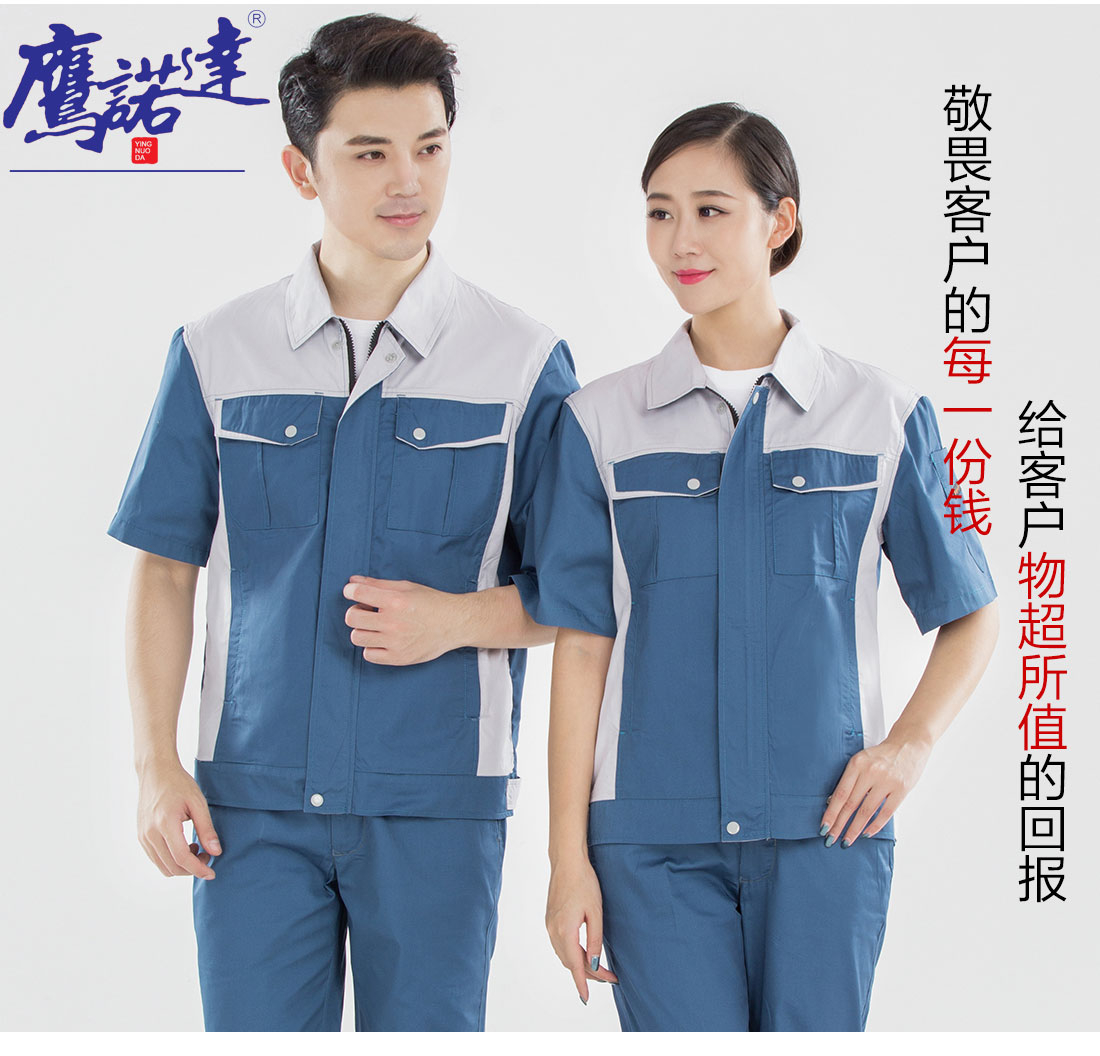 浅蓝拼米白色夏季工作服AD14-2-XJ