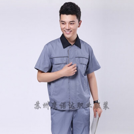 卡其拼藏青涤棉纱卡长袖工衣AC109