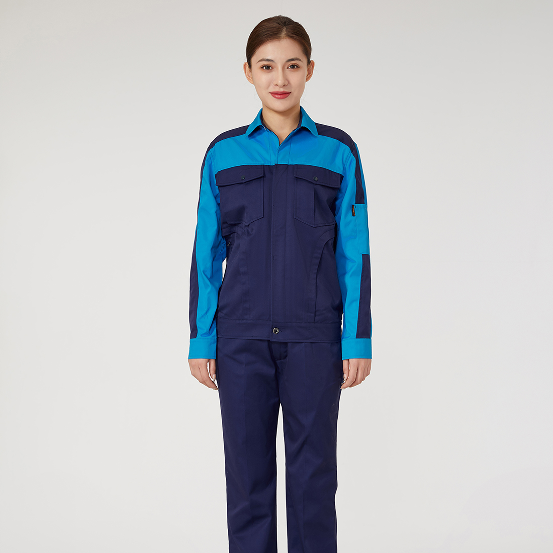 藏青拼翠蓝色工作服AC2203-1